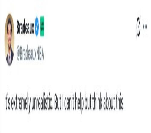 火箭媒體人Bradeaux也曬出哈登與杜蘭特身穿火箭隊球衣的P圖,同時配文道:“我知道這不太現(xiàn)實,但還是忍不住去想。”
