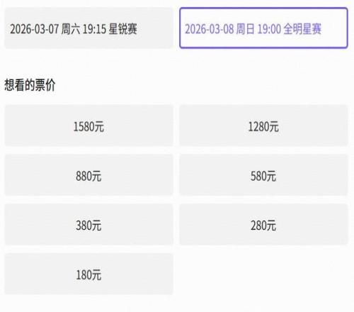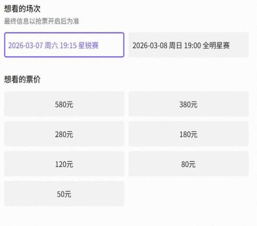 CBA全明星賽門票明日下午開售,最低50元,最高1580元 懂球帝 2026-02-03 22:07:40 北京時間2月3日,CBA官方公布了2026CBA全明星的開票時間和售價。3月7日將進行星銳賽和單項賽(三分球、扣籃、技巧挑戰賽)的預賽,3月8日則是全明星正賽和單項賽決賽。據票務網站顯示,全明星首日的票價最低50元,最高580元。次日的票價最低180元,最高1580元。2026年CBA全明星將在浙江諸暨舉行。CBA免費觀看_全明星免費觀看_星銳賽免費觀看_CBA高清在線_全明星高清在線_星銳賽高清在線 CBA 全明星 星銳賽 上一篇: 莫蘭德6分8板完美!趙繼偉2+4+3+2,亨特4分,遼籃領先江蘇5分 下一篇: 本賽季常規賽第一階段即將打完!這五名本土球員的實力堪比外援