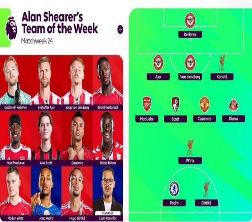 阿蘭-希勒評英超第24輪最佳陣容: