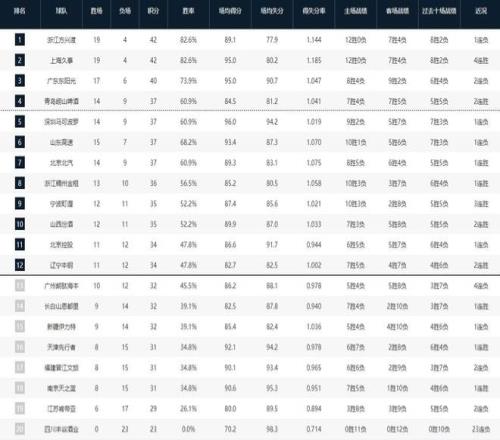 CBA常規(guī)賽第一階段排名