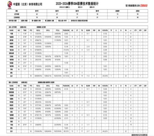 2025-2026賽季CBA常規(guī)賽第二十三輪,遼寧本鋼對陣江蘇肯帝亞的比賽于3日晚在遼寧體育館進行,雙方在40分鐘常規(guī)時間戰(zhàn)平,遼寧本鋼隊最終通過加時賽,以95:82擊敗江蘇肯帝亞。