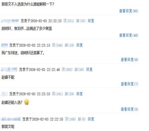 賽后球迷們評論區議論最多的話題有3個,爭議最大的第一個問題,郭昊文怎么沒有入選?第二個問題,趙睿怎么還能進?第三個,是周琦為何這次也落選了?