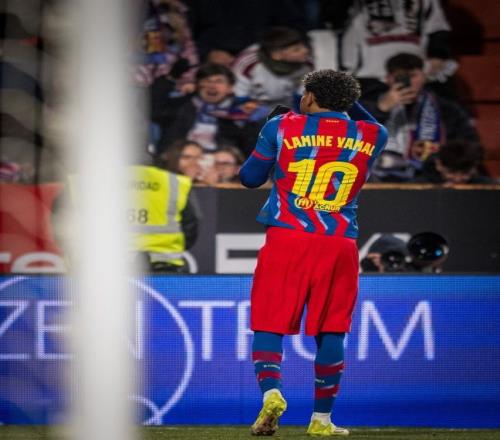 為了避免出現皇馬的翻車情況,巴薩開場后雖然射門次數不多,但好歹牢牢占據主動權;第7分鐘,奧爾莫反擊直塞,拉什福德前插打門偏出;第27分鐘,亞馬爾個人能力強突到禁區被放倒,主裁判卻毫無表示。第39分鐘,巴薩前場高壓逼搶斷球,拉什福德斷球斜塞,德容不停球分到右側,亞馬爾直接兜射得手,1:0!亞馬爾連續4場比賽收獲進球;本賽季進球數也來到了15球。