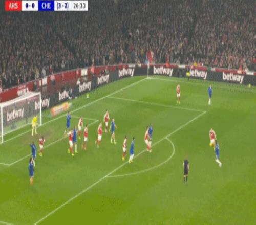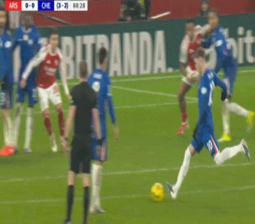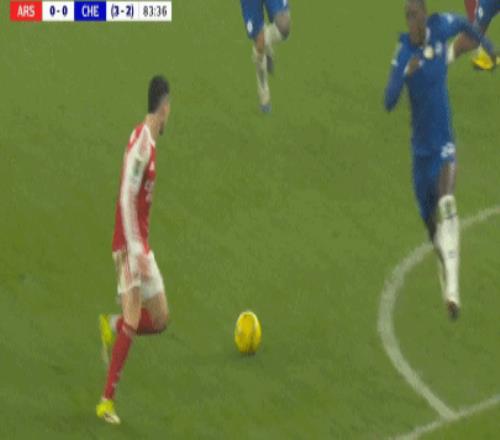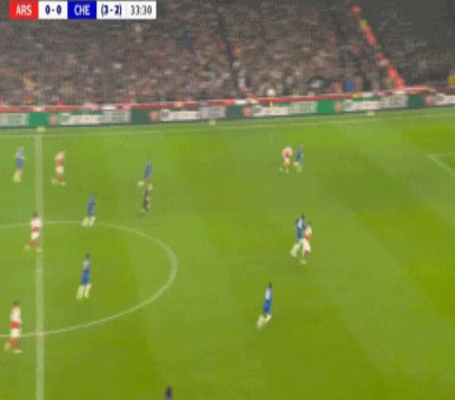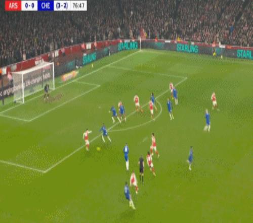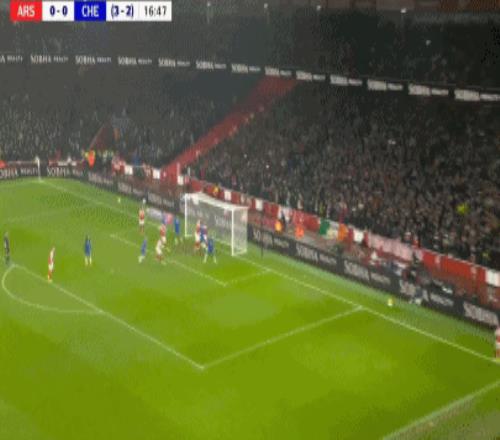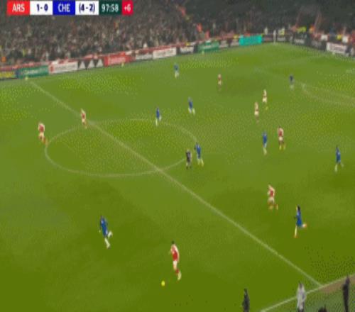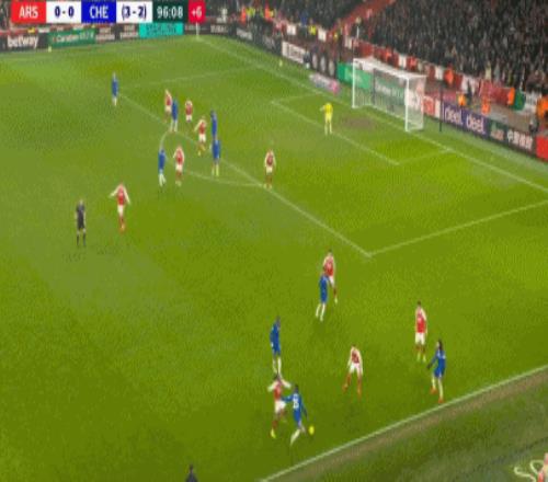 第90+8分鐘,哈弗茨過掉桑切斯,隨后低射破門,阿森納1-0切爾西