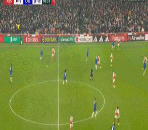 90+7’阿森納打出反擊,賴斯轉移給空當處的哈弗茨,德國前鋒晃過門將羅伯特·桑切斯冷靜打入空門。