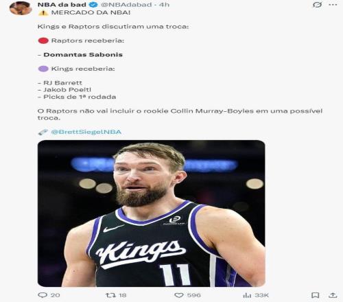 關于多倫多猛龍與薩克拉門托國王之間涉及全明星中鋒多曼塔斯·薩博尼斯的交易討論,近期在NBA交易截止日前變得密集,綜合多家媒體報道,交易框架已初步浮現(xiàn),但最終能否成行仍存在變數(shù)。