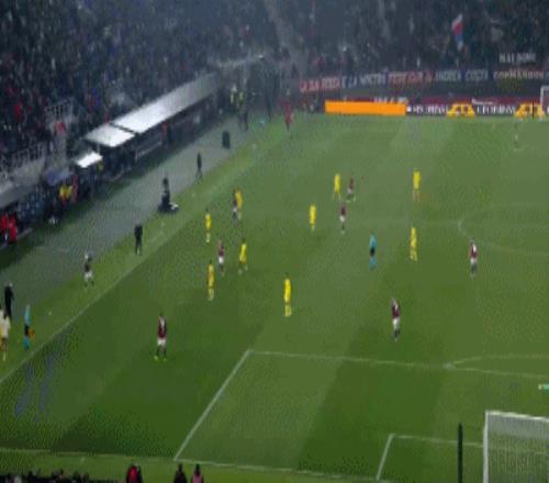 第37分鐘,AC米蘭前場左側斷球反擊,奇克斷球往前推進精妙直塞,恩昆庫接球順勢突入禁區獲得單刀機會,恩昆庫過掉出擊的拉瓦利亞,后者將恩昆庫撲倒,主裁吹罰了點球。恩昆庫親自操刀主罰一蹴而就,AC米蘭半場結束前將比分擴大到2:0。