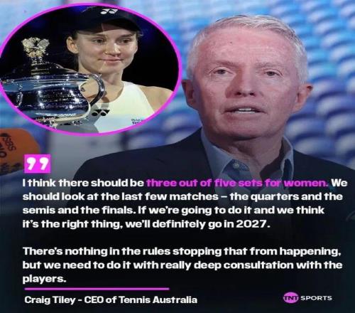 泰利認為,近年女單關鍵場次(如2026年澳網半決賽、決賽)的對抗強度與戲劇性不輸男單,若改為五盤制可進一步放大比賽張力,創造更多“史詩級對決”。