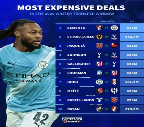 冬季表現(xiàn)不佳的曼城,早早購入塞梅尼奧(7200萬)和格伊(2300萬)收手,居然就鎖定了冬窗俱樂部投資和引援轉(zhuǎn)會費“雙標王”。上半程表現(xiàn)糟糕的熱刺僅完成中場加拉格爾(4000萬)和巴西左后衛(wèi)索薩(1500萬)兩筆金額較大的交易,但布倫南·約翰遜(4000萬)在內(nèi)5人離隊,隊內(nèi)阿根廷中衛(wèi)羅梅羅公開抱怨陣容不整。