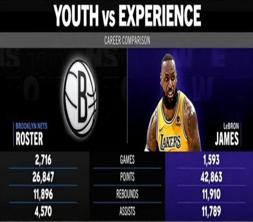 - 1. 本場比賽詹姆斯生涯得分(42863分-26847分)、籃板(11910板-11896板)和助攻(11789助-4570助)都多于籃網本賽季全隊球員之和,恐怖如斯;