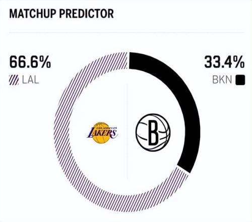 賽前,美媒ESPN對本場比賽進行了勝率預測,湖人隊勝率高達66.6% ,籃網勝率則僅有33.4% ,對比明顯。