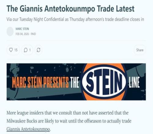 Substack名記Marc Stein也曝出紫金軍團(tuán)的確在積極謀劃,計(jì)劃在2026年選秀夜之后利用三個(gè)可交易的首輪簽(2026年、2031年和2033年)與簽換權(quán)成為字母哥的主要追求者。