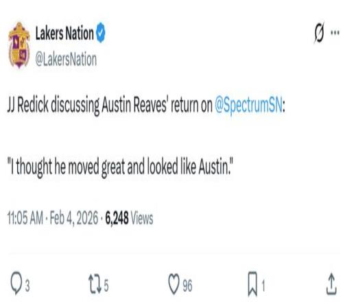 雖然還沒有完全找到比賽節(jié)奏,但對(duì)于攻防體系較為脆弱的湖人來(lái)說(shuō),能夠迎回里夫斯已經(jīng)是巨大的利好,賽后雷迪克稱贊到:“他的移動(dòng)很棒,看起來(lái)很像他自己。”