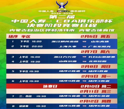 隨著2月3日CBA常規賽第一階段落幕,CBA常規賽的戰火按下了暫停鍵。接下來,第二屆CBA俱樂部杯賽決賽階段,將于2月6日,正式打響!8支球隊,將血戰7天,這一次,看誰能加冕冠軍吧!