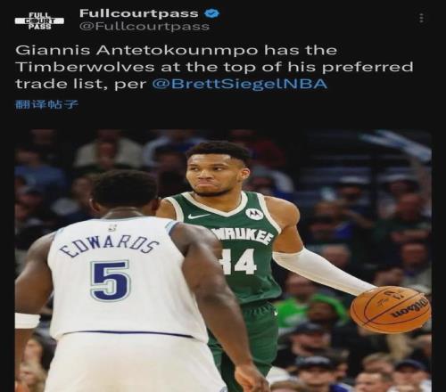 名記Siegel對此表示,字母哥把加盟森林狼&搭檔愛德華茲視為首選,有望今年交易截止日(2月6日)前就空降到明尼蘇達。