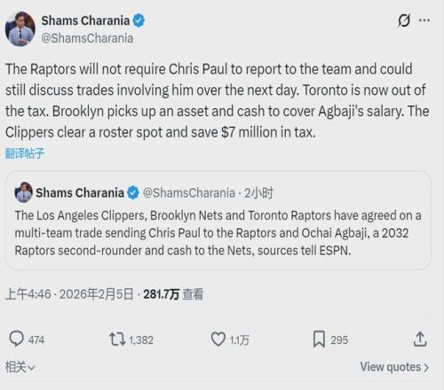 北京時間2月5日凌晨,NBA又有多筆交易達成,其中兩筆跟濃眉和保羅有關。我們先說保羅,這筆交易簡單一些:猛龍將阿巴基和1個次輪簽送到籃網,得到保羅;快船把350萬美元送到籃網,得到2019年60號秀馬林科維奇的簽約權。