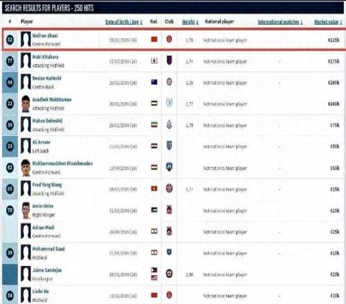 十六歲的成都少年帥惟浩正成為中國足壇一個引人矚目的現象,這名出生于二零零九年一月的球員,在近兩年間經歷了從校園足球賽場到職業聯賽,并入選國少隊核心陣容的快速成長,在德國轉會市場網站上,他的預估身價為二十二點五萬歐元,是目前同年齡段中國球員中最高的一位。
