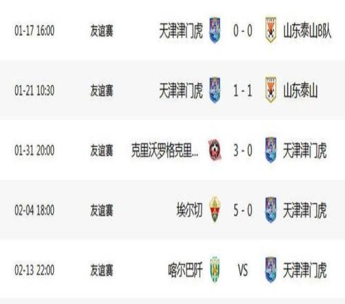 0-5!天津津門虎又被打花了!西班馬拉練一場熱身賽,0-5不敵西甲球隊埃爾切。之所以是“又”被打花了,是因為1月31日對陣烏拉蘭球隊克里沃羅格克里夫巴斯,0-3慘敗。兩場比賽凈吞8蛋,0進球,雖然只是熱身賽,但是津門虎這后防線不行啊,進攻端火力也不足。抓緊改進吧。