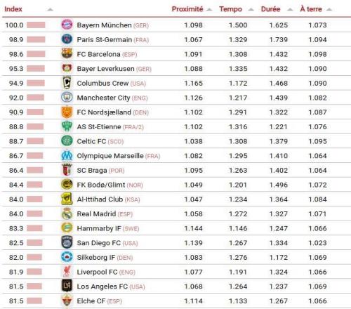 據悉,該排名基于四個指標:傳球的距離(越短越好)、控球階段的傳球節奏、控球的持續時間以及在對方進攻三區內接在膝蓋以下(地面)傳球的百分比。