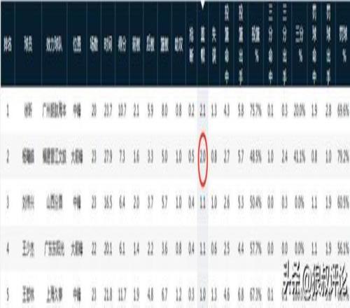 楊曦皓代表福建出戰23場比賽,首發19場,場均得到27.9分鐘的出場時間,交出7.3分5.0籃板1.0助攻2.0封蓋,其中,2.0次封蓋位居所有新秀球員最高,僅次于徐昕的2.1次,毫無疑問是一個非常出眾的護框手。