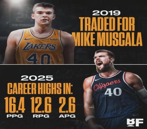 祖巴茨出生于1997年3月18日,2016年第32順位被湖人選中。10年NBA生涯,他一直在洛杉磯打球。2019年2月,湖人把祖巴茨和邁克爾-比斯利送到快船,2換1交易得到穆斯卡拉。結(jié)果穆斯卡拉在湖人只打了17場比賽就離隊了!