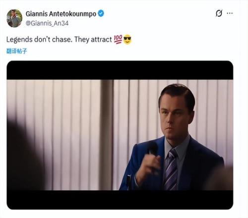 北京時間2月6日,交易截止日過去了,字母哥依然留在雄鹿,沒有被交易到其他球隊。他本人也在截止日過后更新社媒,寫道:“傳奇從不會主動追逐,只會自帶引力。”字母哥還轉發了一個電影片段,里面主演萊昂納多說道:“我TMD不會離開,這是我的主場。”