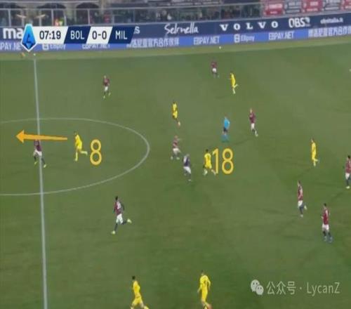 而在比賽初期,主場作戰的博洛尼亞執行高位壓迫并非一無是處,但搶下來的機會都被低效的單打揮霍了。