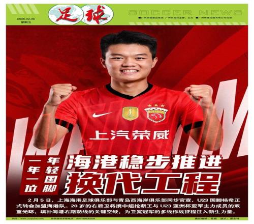 記者程善報道2月5日,上海海港足球俱樂部與青島西海岸俱樂部同步官宣,U23國腳楊希正式轉會加盟海港隊。這筆轉會費相當于本賽季中超冬窗本土標王級別的交易,歷經多方博弈最終塵埃落定。繼21歲的吾米提江逐步成長為球隊主力并展現出足以躋身國家隊的能力之后,20歲的國家隊未來右閘希望將攜中超搶斷王與U23亞洲杯亞軍主力成員的雙重光環,填補海港右路防線的關鍵空缺,為衛冕冠軍的多線作戰征程注入新生力量。