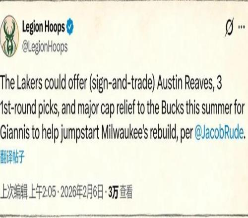 不過如果雄鹿在交易截止日送走字母哥,湖人幾乎毫無機會,一方面他們手中籌碼實在有限,只握有一個首輪簽,顯然滿足不了雄鹿的胃口;另一方面,因為詹姆斯的合同,他們后續補強的操作空間被堵死。