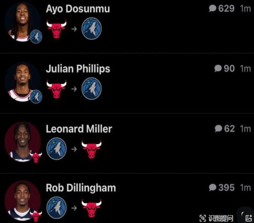 公牛將道蘇姆、菲利普斯送至森林狼,換迪林厄姆+倫納德·米勒+4次輪