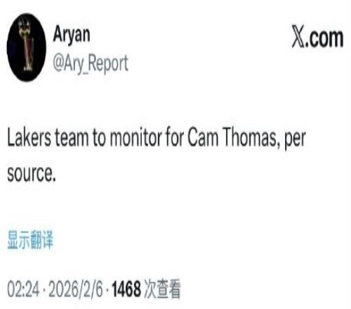 NBA記者Aryan:湖人密切關注卡梅倫-托馬斯!