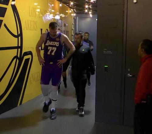 在比賽進(jìn)行到第二節(jié)時(shí)刻,東契奇在一次進(jìn)攻回合后,他出現(xiàn)受傷情況捂著左腿,湖人請(qǐng)求暫停,隨后東契奇被替換下場(chǎng),也是很快返回更衣室去接受檢查。