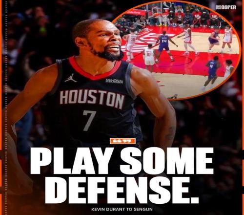 第三節還剩10分鐘時,申京直接被克努佩爾一步過掉輕松上籃,直接惹怒一旁的杜蘭特,KD朝著申京攤手吼道:“你倒是防一下啊!”