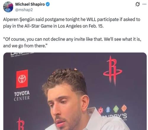 結果在表現如此糟糕的情況下,賽后談及全明星話題,申京仍表示如果全明星賽邀請他參賽,他一定會出戰。