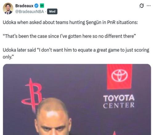 很明顯,烏度卡也對申京的防守表現不滿,甚至明示其在防守擋拆方面毫無長進。