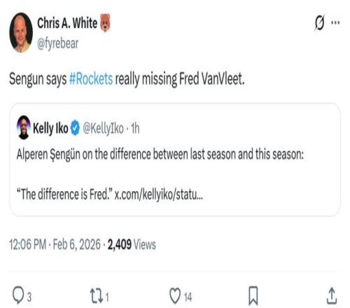 火箭隊苦吞2連敗,申京僅7分仍不忘全明星!遭KD烏度卡場上場下連續批評后,賽后公開表示想念范喬丹。