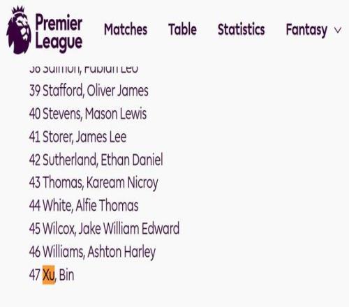 2月6日,在英超官網(wǎng)更新的冬窗后球隊陣容更新名單中,中國U23隊員徐彬出現(xiàn)在狼隊U21陣容名單里,這也意味著他具備代表狼隊U21出戰(zhàn)的資格。