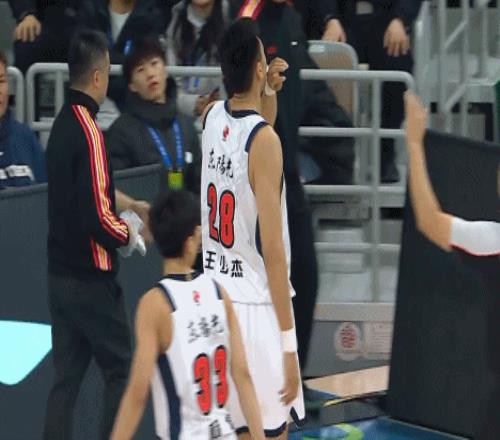 從慢鏡頭可以看到王少杰直接被迫下場(chǎng)止血,而王哲林也因此領(lǐng)到第二次犯規(guī)。