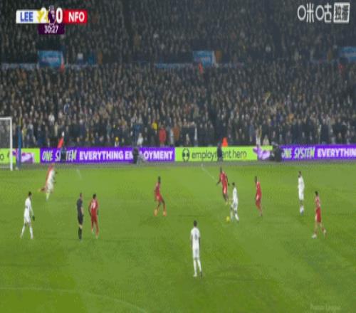 第30分鐘,賈斯廷助攻,奧卡福爾推射破門,利茲聯2-0諾丁漢森林