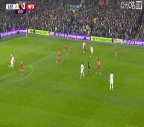 第49分鐘,格魯耶夫助攻,勒溫胸部撞射破門,利茲聯3-0諾丁漢森林