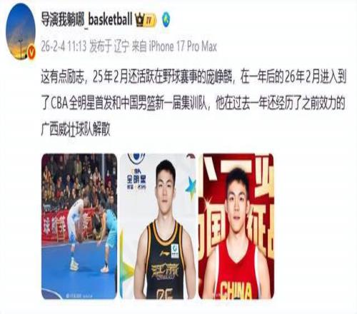 就像“導演我躺哪”說得那樣:“這有點勵志,25年2月還活躍在野球賽事的龐崢麟,在一年后的26年2月進入到了CBA全明星首發和中國男籃新一屆集訓隊,他在過去一年還經歷了之前效力的廣西威壯球隊解散。”