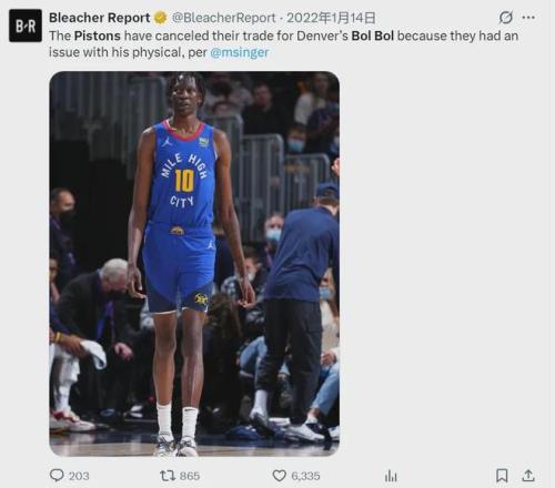 黃蜂向聯盟提出申訴,控告湖人私自取消交易,后來不了了之。再比如活塞,曾兩次取消交易:2016年2月,火箭把莫泰送到活塞,莫泰體檢沒過,活塞取消交易。2022年1月,掘金把波爾-波爾送到活塞,波爾體檢沒過,活塞再次取消交易。