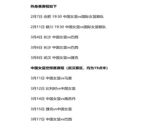 是的,中國女籃國家隊的賽事又將開始了,從今天開始一直到3月17日,38天的時間里,中國隊已經確定要打5場熱身賽,以及5場世預賽。加油,無畏金蘭的鏗鏘玫瑰。