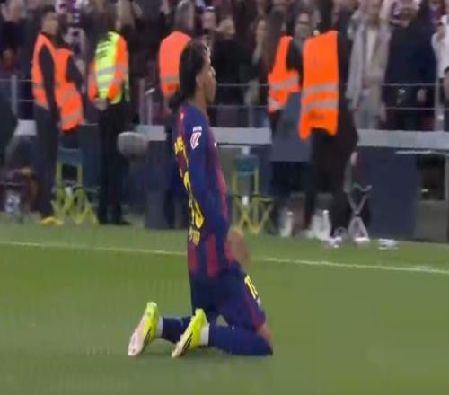 進球之后,亞馬爾先是滑跪慶祝,隨后與巴爾德一起翩翩起舞。