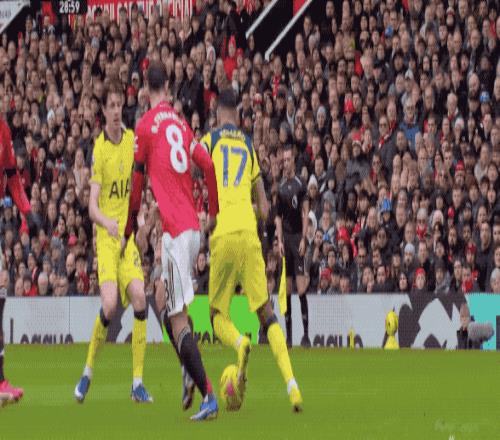 第23分鐘,阿瑪德迪亞洛吸引防守后傳球,B費順勢推射,遺憾打偏。