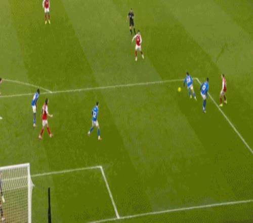 第93分鐘,內爾高大腳解圍,馬丁內利帶球長途奔襲,禁區內冷靜橫敲,哲凱賴什輕松推射空門得手,完成梅開二度好戲,阿森納將比分鎖定在3-0!