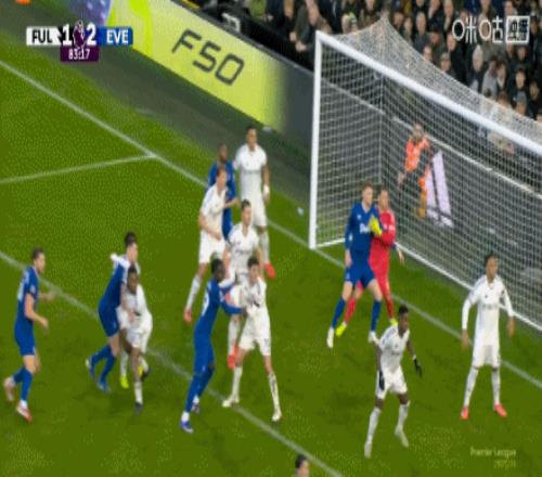 第82分鐘,埃弗頓角球機(jī)會(huì),萊諾自擺烏龍,富勒姆1-2埃弗頓