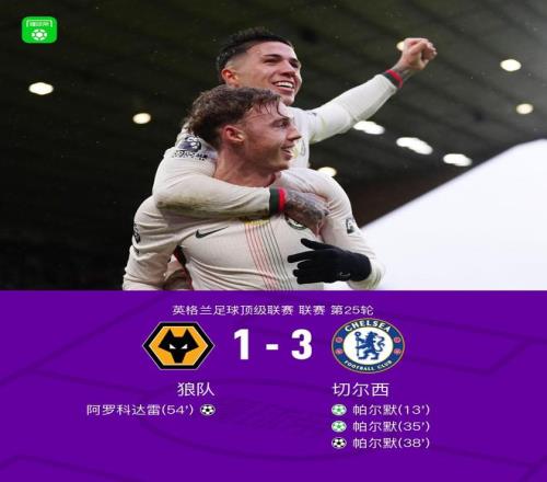 北京時間2月7日英格蘭足球頂級聯賽第25輪,狼隊主場對陣切爾西。上半場,若昂-佩德羅兩次造點,帕爾默點球雙響+破門完成帽子戲法,下半場,阿羅科達雷扳回一城。最終比分狼隊1-3切爾西。