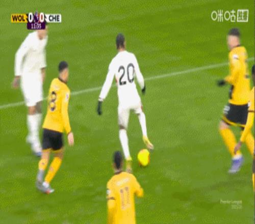 第24分鐘,切爾西球員連續多次射門,恩佐插花腳射門被撲
