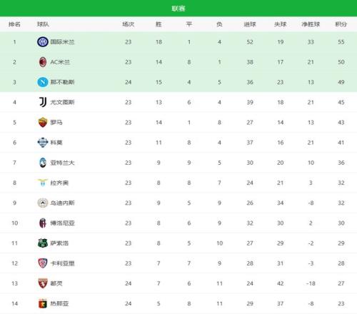 目前意甲積分榜如下:國際米蘭依舊領跑,18勝1平4負積55分,占據主動;AC米蘭以50分緊追其后;那不勒斯憑借這場極限絕殺來到49分,但比前兩名多賽一場,容錯空間并不大。尤文圖斯45分暫列第四,羅馬、科莫緊隨其后,爭四集團之間的差距不大,而亞特蘭大、拉齊奧的起伏表現,也讓歐戰資格之爭充滿變數。